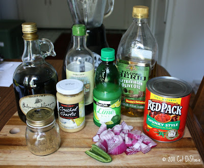 - Combine all ingredients (except oil) in a blender and puree until smooth.