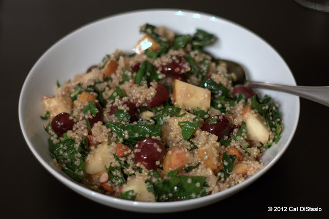 For whatever reason, I didn't feel like giving in to the laziness entirely. I also didn't feel like going all-out and making an elaborate dinner, so I compromised. Using some leftover quinoa from my fridge, I whipped up a sweet and satisfying warm salad from ingredients that you probably already have on hand. It may have been some of my laziest kitchen work yet, but I managed to create a keeper. I think you'll like it.